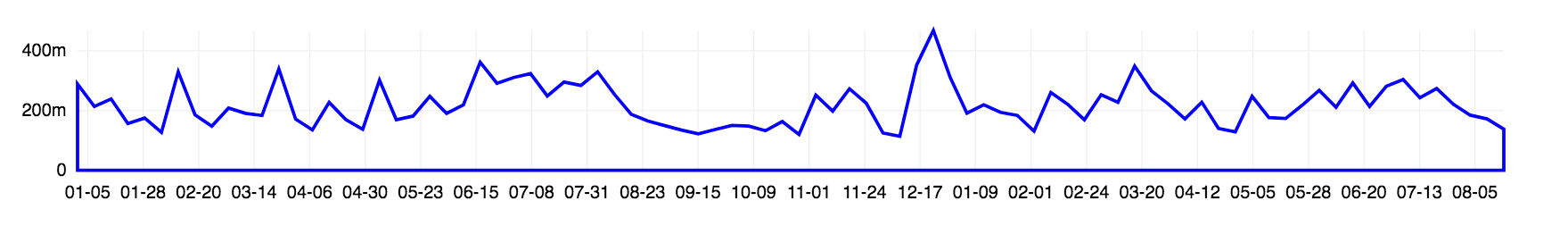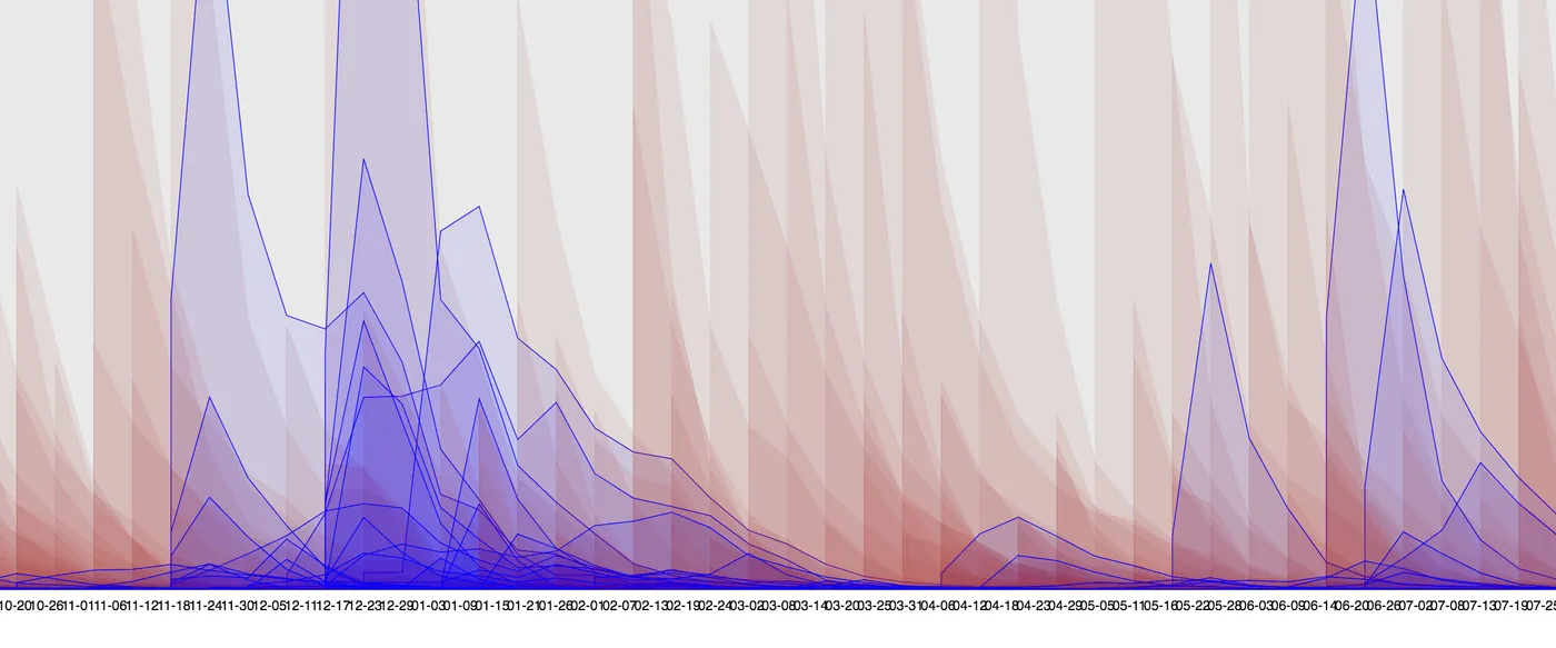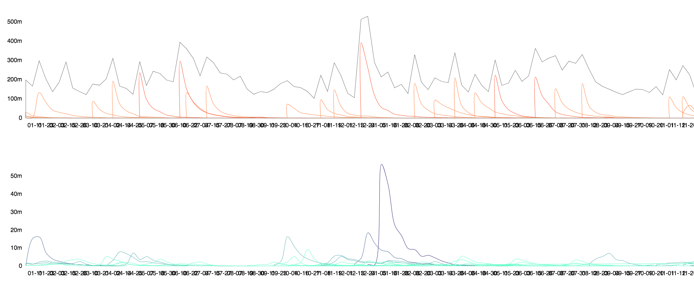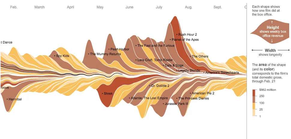A full interactive version is here. This project is a remake of the New York Times The Ebb and Flow of Movies: Box Office Receipts 1986 — 2008.