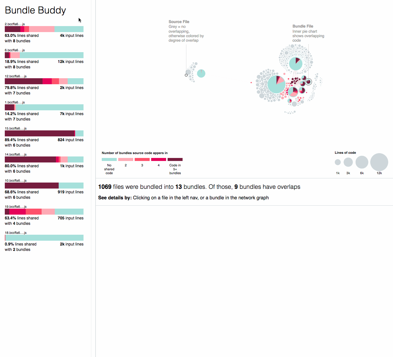 To help with this balancing act, Sam and I made Bundle Buddy (demo) to examine if your bundles are duplicating too much code at the cost of reducing the file count.