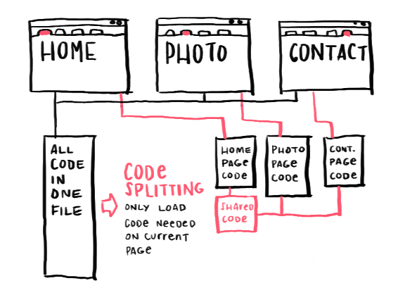 Code splitting however is a delicate balance between limiting the number of files a user must download, and the size of those files.