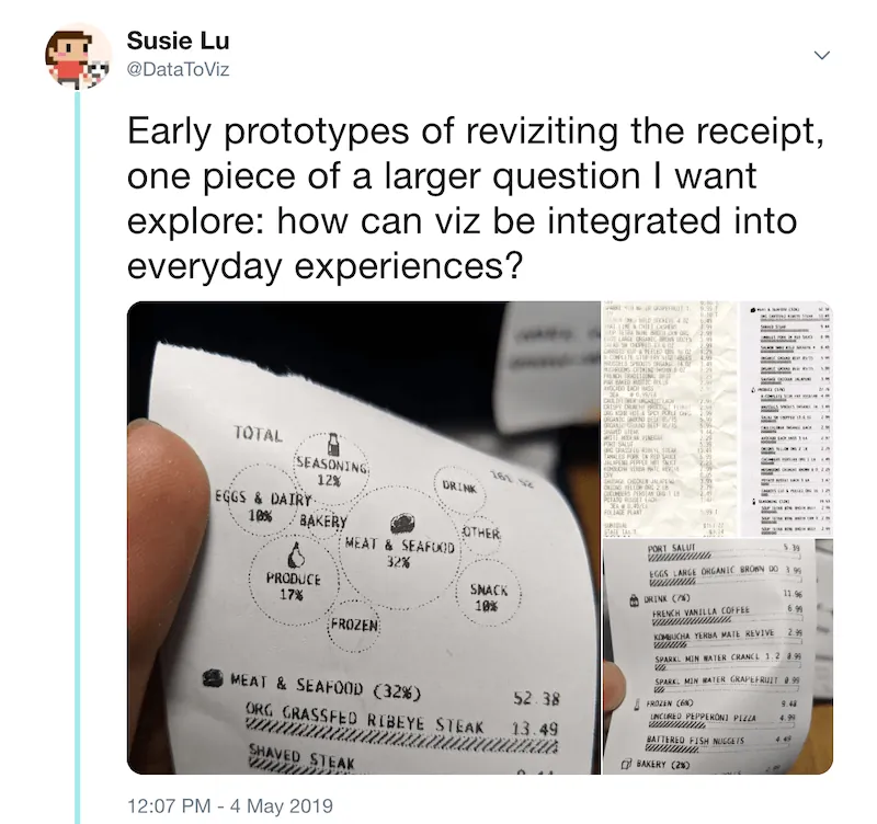 - Inspire and provoke the audience to question "Why couldn’t everyday objects like receipts use data visualization?"